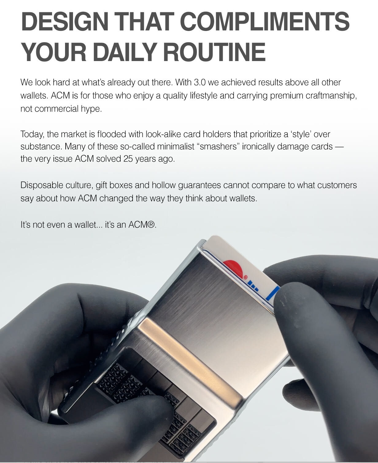 We meticulously refined every detail to guarantee you get the exact card you need instantly – for a lifetime of use with a look and performance above the rest. Built with Premium materials, 3.0 is the smallest and strongest ACM ever.